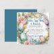 En vacker vattenfärgskrans med färgade ägg och vårblommor i lila, rosa persika, gul, blå och akvafärg inbjuder gäster till en påskäggsjakt och brunch. Mallen kan redigeras enkelt med detaljerna för din påskfirande. Inbjudan har två typsnitt, ett roligt script och elegant serif i mjuka svarta och rika blå. Denna mall kan redigeras enkelt med detaljerna för din påskfirande.