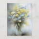 Vattenfärg Pastellblå, Vit, Gul Tusenskönasblomma Vykort