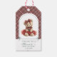Vattenfärg preppy rutig teddybjörn baby shower presentetikett