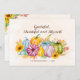 Var tacksam och tacksam! Skicka tacksgottshälsningar till familj och vänner med vårt eleganta tacksgott-kort med en vacker vattenfärgsdesign med pumpor, solrosor och blad i levande nyanser av orange, gul, blå och grön.