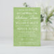 Dessa vattenfärg tema rehearsal middagsinbjudningar är fantastiska och romantiska! Inbjudningarna har kalligrafi, modern typografi, blomster rullar över en vattenfärg bakgrund i en grön och vit färgskala.