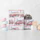 Vattenfärgsgammal röd lastbil med polkagrisar, röd gräns och snöflingor övertäckning. Gräns färg kan ändras.