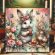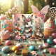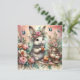 Vattenfärg Ro Guld Bunny Påsk Tea Party Julkort