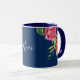 Vattenfärg Röd och Rosa Blommor Mörk Blå marint Mugg