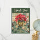 Det här eleganta tackkortet presenterar en fängslande akvarellillustration av en röd julstjärna i en guldfärgad behållare, kompletterad med votivljus på ett bord. Den livfulla julstjärnan genomsyrar kortet med värme och naturlig skönhet. Framsidan har en hälsning med "Tack" i en typsnittsstil, medan baksidan är genomtänkt utformad för personlig anpassning och erbjuder gott om utrymme för ett anpassat meddelande. Konstverket genererades med hjälp av AI och designriktning tillhandahölls av Susang6.