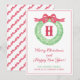 Vattenfärg Röd Prickig Band Monogram Krans Fest Julkort