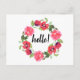Vattenfärg röda och rosa blommor krans cirkel vykort