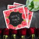 Vattenfärg röda rosor Derby Bröllopsdusch Pappersservett