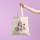 Vattenfärg rosa blomma med din initial 1 sida tygkasse