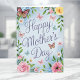 Denna design är komplett med en vattenfärg-illustration av fjärilar, grönska och blommor som omger orden "Grattis på mors dag". Inuti kortet står "Mamma, du är min fjäril—graciös, stark och full av kärlek". Du kan ersätta detta med dina egna ord om du vill. Njut!