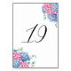 Bordnummer 19 | Fullborda din dukning med dessa eleganta bordnummer. De har rosa och blå hortensia buketter i vattenfärg och fantasifull typografi. Detta blomsterbordnummer är perfekt för vår- och vinterbröllop, brud shower, baby shower och mycket mer. Matchande artiklar finns tillgängliga.
