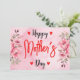 Modern blomster personlig Mor Dag gratulationskort. "Lycklig Mor Dag" visas på framsidan i modern kalligrafi med Vattenfärg Rosa Ros Blomma och hjärtan. Insidan av Mor Dag-kortet visar ditt maskinskrivna eller handskrivna meddelande.