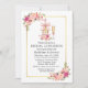 Modern Elegant Vattenfärg Champagneflaska och Glas med Rosa Slöja Band Bröllopsdusch Inbjudan. Inkluderar vattenfärg rosa rodnad blomster inklusive rosa rosor och botanisk grönska. Guld ram.