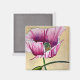 Vattenfärg rosa vallmo konst blomma magnet