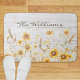 Vi presenterar vår vattenfärgade Rustic Gult Solros Garden Wood Bath Mat . Med en vattenfärgad elegant som illustrerar solrossken med vit träbakgrund, ge på sidan av grevskapet, som visar din köksdekoration. Anpassa texten och gör den till din!