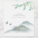 Vattenfärg Rustik Grönska Berg Bröllopsdusch Vinflaska Etikett