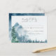 Tema fester vattenfärg berg rustic bröllop RSVP-kort design har vattenfärg träd och berg på en dammig blå vattenfärg bakgrund. Typografin kombinerar traditionell bokstavsstil med modern handskriven text. #Bröllopsinbjudningar #Dammigblåttbröllop #Bröllopsinbjudan