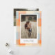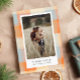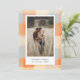 En rustik elegant festlig julkortdesign med en färgrik vattenfärg rutmönster bakgrund i nyanser av Orange, Kräm och Ljusblå med utrymme för personligt foto (vertikal eller porträtt orientering).