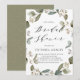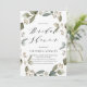 Inbjudan familj och vänner med detta gröna inbjudningskort för möhippan. Den har vattenfärgade illustrationer av utandningsluften av eucalyptus med strålande punkter mönster. Denna eukalyptus- inbjudan är perfekt för fall - och höstmöhippor. Anpassa genom att lägga till information om namn, datum, tid, plats och andra händelser. Du kan anpassa baksidan av inbjudan ytterligare genom att ändra mönster till ett foto eller någon annan bild.