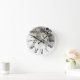 Vattenfärg Silver Guld Vita Rosor Blommor Rund Klocka. Unik, vacker, stilren design. Lätt att anpassa. Matchande föremål finns tillgängliga.