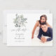 Trendigt silver salvia blommigt bröllop spara datum kan anpassas till ditt evenemang. Kredit till chocolatesquestudio.