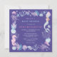 Bedårande vattenfärg siren under havet lila baby shower inbjudan. Feminint formspråk med en siren, undervattensdjur, sniglar och korallrev i vattenfärg stil.