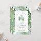 En elegant, naturinspirerad bröllopsinbjudan med förhandsbesked. Del av en komplett bröllopssvit. Med elegant text och vacker vattenfärg skog design.