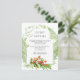 Trendiga handmålade vattenfärg grönska och jordgubb gästinformationskort med salvia grön vattenfärg tvätt bakgrund.