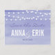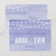 Vattenfärg sladdljus bröllopsdesign skapades av Aubergine och Purple. Denna moderna design innehåller en sträng av lampor med en vacker lavendel-lila vattenfärg bakgrund.