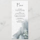 Vinterhochzeit meny med vattenfärg snö skog och ömtåliga blad. Designen har en färgpalett av dammig blå, skifferblå, blågrå och vit. Den är personliggjord i modern handskriven bokstavsstil och klassisk elegant typografi. Perfekt för vintersäsongen, högtidlig höst eller julhochzeit. Vänligen bläddra i min Snö Skog samling för matchande artiklar eller skicka mig ett meddelande för att skapa de mallar du behöver.