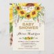 Vattenfärg Solros Baby Shower Rustik Boho Inbjudningar