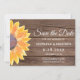 Inbjudan familj och vänner att spara datum för ditt bröllop firande med detta rustiska solroskort. Den är dekorerad med en solrosfärgad solrosfärgad i nyanser av gult på en brun barwoodbakgrund med snyggt-manustypografi. Anpassade enkelt med dina uppgifter. Ursprunglig vattenfärg © Michele Davies.