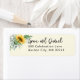 Enkel och elegant på blekgul returadressetikett med en vattenfärgsolros eukalyptus och grönska.