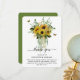 En vacker elegant sympati tack vare ditt kort, med en klassisk vit bakgrund, en vattenfärgad illustration av solblommor och eukalyptus blad och söt fladderande fjärilar. Tack-texten finns i calligraphy-skript och en tackmeddelandemall är lätt att anpassa.