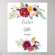 Denna akvarell skylt med sommarblommor och texten "cards and gifts" är perfekt till en bröllopsfest eller möhippa. Denna underbart kreativa blomsterdesign visar mörkröda, rosa, burgunderröda och lila peonior som inger klass och naturlig skönhet. Gör textraden längst ner på skylten till din egen genom att inkludera datum, brudens och brudgummens namn eller ett kort meddelande som "Tack". Skylten kan komplettera ett bröllop eller vilken fest eller tillställning som helst.