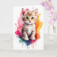 Vattenfärg stänk konst med en bedårande kattunge. Tom välkomstkort för födelsedag, årsdag, ny baby, tack, sympati, etc.
