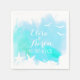 Modern abstrakt akvblått stänk med stjärnfisk och fiskmåsar, papper napkin med handmålad vattenfärg stänk med struktur i ton med akvblått och turkos, två stjärnfiskar och fiskmåsar i vitt och text i vitt. Den här avslappnaden för elegant och snyggt i bröllop är en perfekt för hela anpassadet för vår eller sommaren bröllop, möhippa, mottagning, förlovning eller årsdag party.