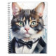 Vattenfärg Tabby katt i ett Tuxedo- och Black Bow Anteckningsbok