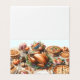 Vattenfärgsillustration av en vackert arrangerad Thanksgiving-middag på ett trädgårdsbord. Mitten av dukningen är en rostad kalkon omgiven av en rad färgglada rätter. Små dekorativa pumpor pryder bordet, och det finns ljus som ger ett varmt sken. Dukningen inkluderar tallrikar, bestick och glas, vilket skapar en mysig, festlig atmosfär. Designad av konstnären Danguole Serstinskaja