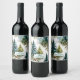 Vattenfärg Tall Mönster Vinter Bröllopsfest Vinflaska Etikett
