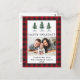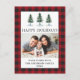 Vattenfärg Tallar Glad Jul Familjefoto Modern Julkort - Rött Buffel Rutmönster