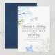 Trendiga marinblå och vita havstema bröllopsinbjudningar med havsfärger, tång och sjöstjärnor designade för att snabbt och enkelt anpassas till din evenemangspecifikation.