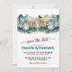 Vattenfärg Teal Mountain Bröllop spara datum Inbjudningar