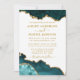 Modern Elegant Vattenfärg Teal och Guld Marmor Agat Geod Bröllopsinbjudan Kort - Vit Bakgrund med Guld Skrift - Foto Baksida