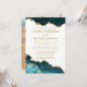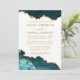 Vattenfärg Teal Vit Guld Marmor Geod Foto Inbjudningar