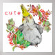 Vattenfärg teckning i en rolig Corella-papegoja - Nymph i tropiska växter och blommor