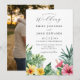 Denna eleganta vattenfärg tropiska blommor bröllopsinbjudan kan anpassas med din information i chic typografi och ett speciellt foto på baksidan. Designad av Thisisnotme©