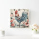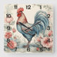Vattenfärg Tupp och blommor Fyrkantig Klocka