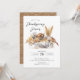Vår vackra inbjudan till Thanksgiving med vattenfärg har en middagsscen med en kalkonmiddag. Inbjudan är enkel och elegant, med vit bakgrund och svart text.