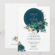 Vattenfärg turkos blomma Spara datum-kort Datumet